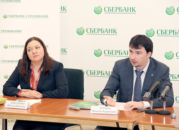 Брифинг с участием директора дирекции банковского страхования Сбербанка России Александра Газизова и генерального директора компании «Сбербанк страхование» Максима Чернина, Москва, 2013 г.